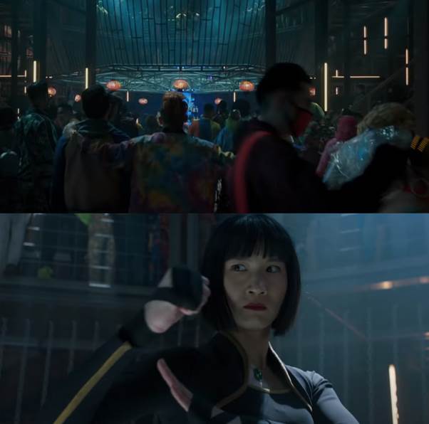 尚氣隨著 Katy 與錢信伊飾演的 Jon Jon 來到一個充滿賽博龐克風格的地下拳場,預告後面能看到他對上了和自己疏遠的姐姐夏玲 (Xialing)。此外這個城市的風格,與我們熟悉的「馬德里坡」(Madripoor) ,也就是在《獵鷹與酷寒戰士》中的城市十分相似。