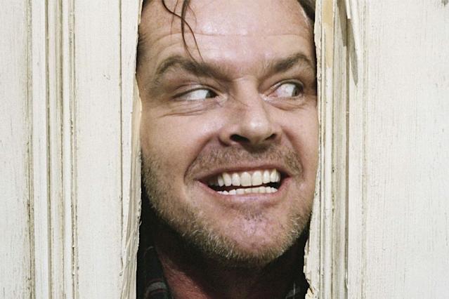 ▼這張臉相信很多人都看過,但不知道他是誰,更不知道從何而來。(由傑克尼柯遜飾演的主角在片中持斧頭破門的場景)