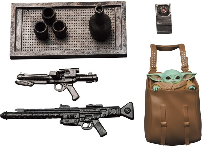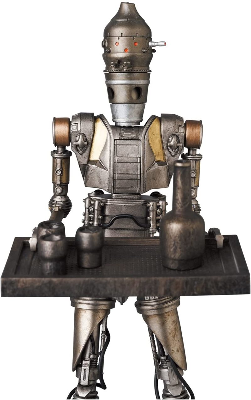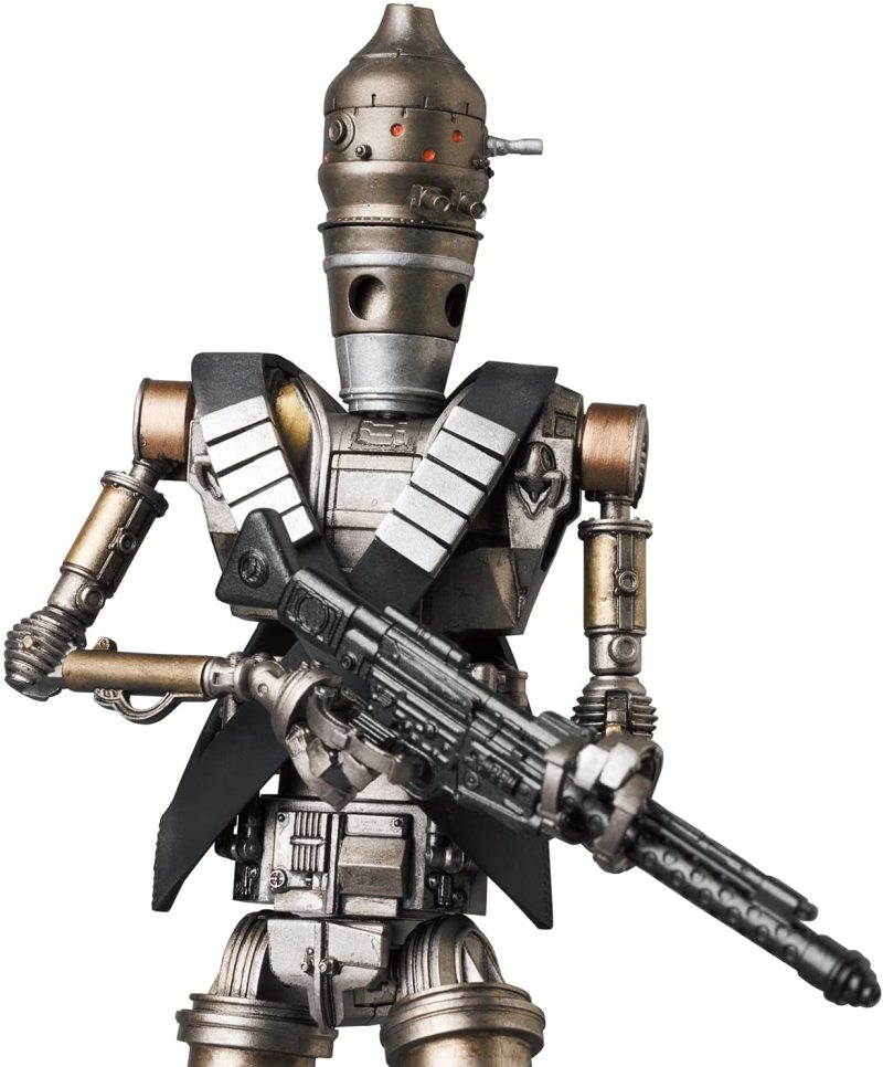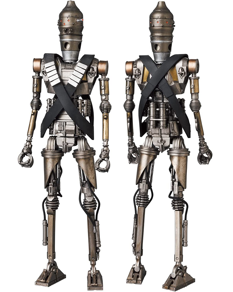 本作高約 18.5 公分,高度再現了 IG-11 標誌性的長型頭部、全身上下的機構管線,與逼真的舊化痕跡,除了富含重量感的金屬塗裝之外,部分零件還選用合金材料製成,藉著可動關節就能精準還原第一集的戰鬥造型,配件部分包含裝著格羅古的背包、茶杯&托盤組、爆能槍、爆能步槍,以及位於胸口的自爆裝置(啟動狀態)替換零件,從戰鬥機器人到最強機器保母的各式面貌都能夠讓你把玩出來!