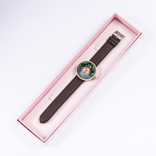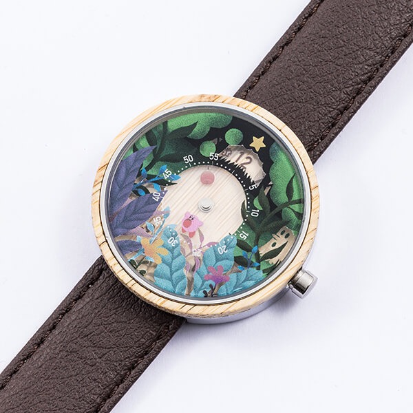 靈感來自於超任《星之卡比 超級豪華版》的遊戲章節「はるかぜとともに」( 沐浴春風 )。 以遊戲中對抗 BOSS -蘋果樹的場景為設計靈感,並以木紋的錶身本體為特色,展現出跟一般手錶不同的質感。時間顯示上也採用不同的方式,背景會藉由旋轉作為時針的概念,搭配作為時針的蘋果與秒針的卡比,超級可愛的啦 XD。售價為 19,580 日圓。