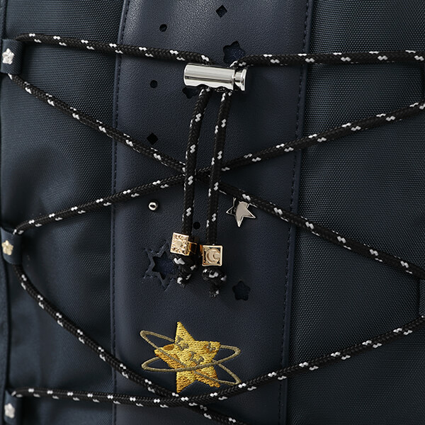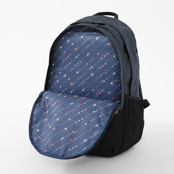 設計靈感來自「向銀河許願」,也是當時發行在超級任天堂上的《星之卡比 超級豪華版》登場遊戲章節之一。在背包上可以看到刺繡與星星壓紋,搭配上作為拉鍊吊飾的卡比,彷彿徜徉在銀河系之中。背包內裡也不馬虎,分為兩層還有不同的內襯設計,前面一層有著滿版卡比穿梭在藍色背景宇宙中的可愛圖樣;後面一層則是黑色的背景,搭配卡比與各個星星戰鬥的模樣,各個經典角色與畫面皆在裏頭,相信喜歡卡比的朋友都會認得這些設計的靈感來源。售價為 16,280 日圓。