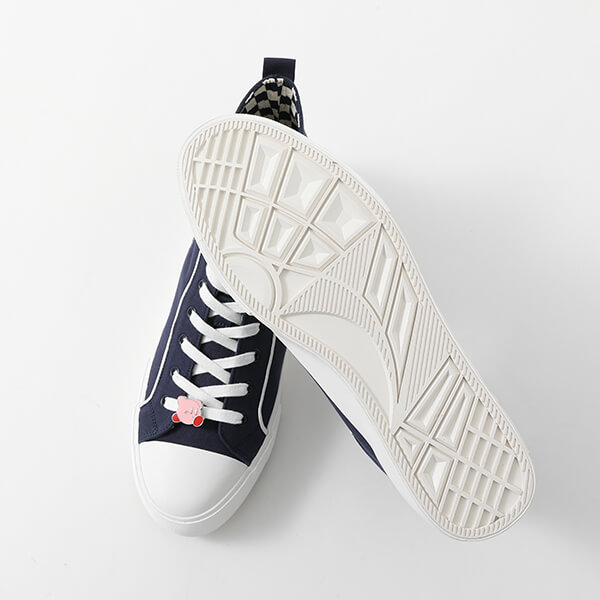 本款帆布鞋會附上兩個鞋帶扣,分別為奔跑的卡比&M番茄;鞋舌上也附上的刺繡 「Gourment Race」( グルメレース ) ,搭配鞋外側奔跑的卡比和帝帝帝大王的身影,與中底太陽&月亮的圖案。後跟有著倒數計時的時間,為《星之卡比 超級豪華版》發行日期 3 月 21 日。鞋墊也以粉紅色呈現出卡比世界中的各種美食,十分可愛 ~ 售價為 11,880 日圓。