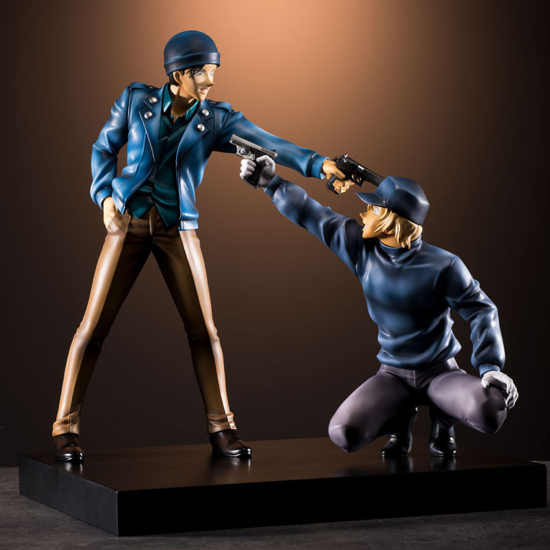 在服裝、手中的槍枝等細節皆細膩刻劃與精緻塗裝,營造質感;將兩人對峙的姿勢精彩重現!赤井秀一全高約 22 公分,蹲姿的波本則是高 14 公分。