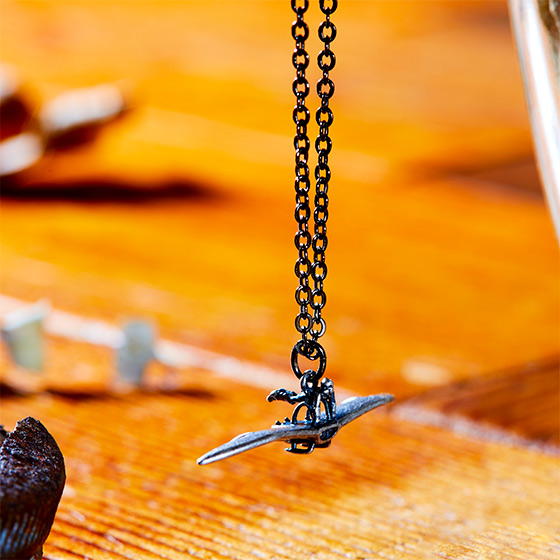 使用日本製的黃銅製成,將娜烏西卡操作滑翔翼的姿態完美呈現在項鍊上,人物的動態感與銀飾的成形都非常到位,相信喜歡娜烏西卡的粉絲會有興趣。售價為9,900 日圓,
