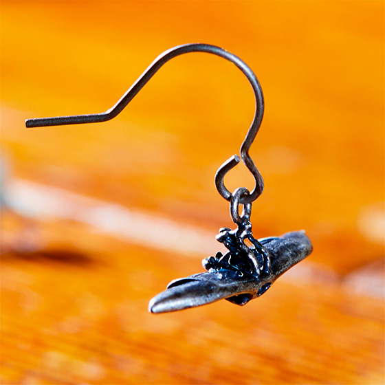 以同樣的設計放置在耳環上,一樣使用黃銅製作,日本製的品質,配戴上去彷彿是娜烏西卡在你的耳邊飛翔一般。售價為 5,500 日圓。
