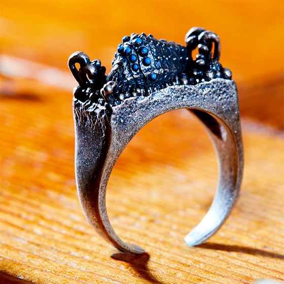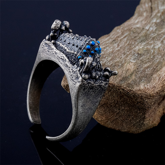 以王蟲爬行在腐海上的姿態呈現,身軀上的眼睛與身旁的地景都非常精細,配戴在手指上擁有巨大的存在感,感覺王蟲就陪在你身邊一樣 XD。售價為 9,900 日圓。