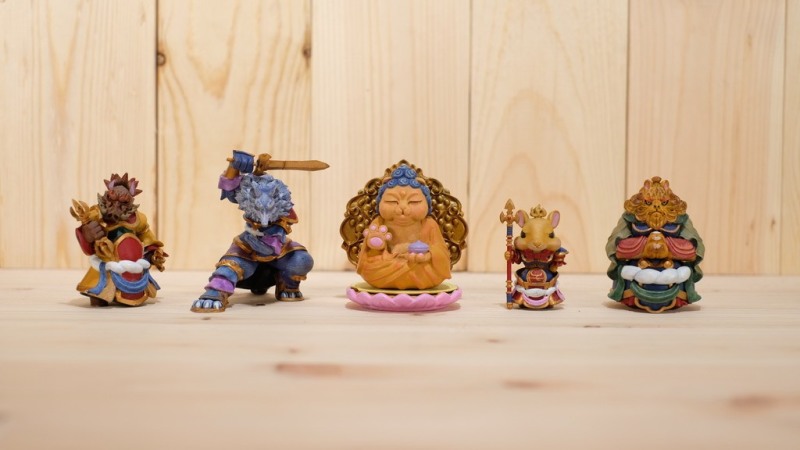 有別於前幾彈作品幾乎都是主打貓化如來、貓化菩薩的可愛與療癒,這次加入了更多外型剛猛、更具威嚴的佛教護法,五款作品分別為「貓藥師佛(也稱為藥師如來)」、對應生肖為鼠的「子神將」、對應生肖為獅或虎的「寅神將(此為虎)」、對應生肖為犬的「戌神將」,以及對應生肖為豬的「亥神將」,除了維持三条獅子特色的設計風格之外,本作也在 7 公分的尺寸中仔細地刻畫出十二大藥叉將的服飾、法器細節,依照官圖來看,色彩細膩度也相當足夠,戌神將帥爆~最後要說的是,貓藥師佛的肉球也太讚了吧!