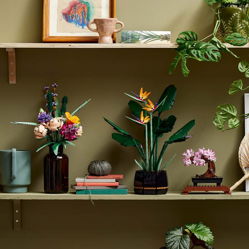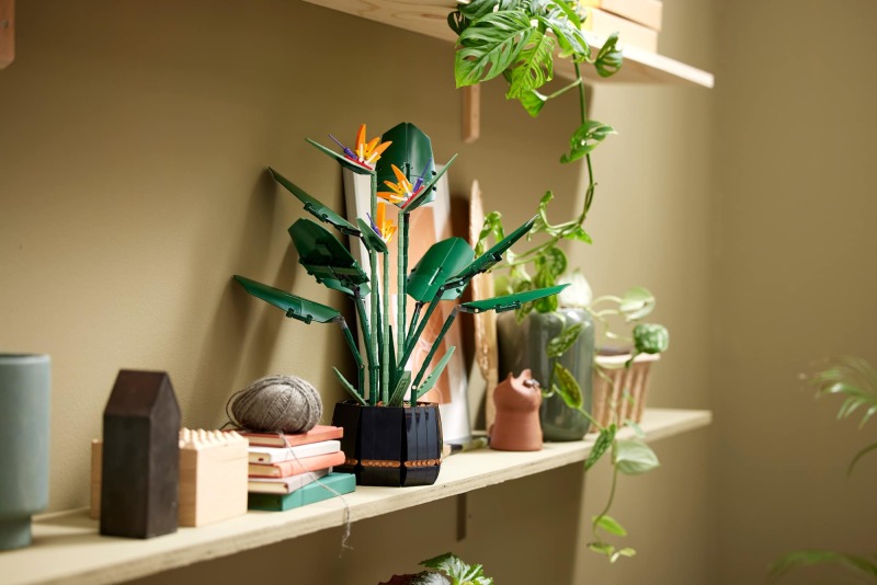 在大熱門的「10280 花束」、「10281 盆景樹」之後,樂高花藝收藏總算迎來了第三株植物「天堂鳥」!這次以 1173 片零件拼搭而成的天堂鳥全高來到 46 公分,再現了直挺挺的莖與大片綠葉,而天堂鳥看起來鮮豔嬌貴的花朵也以紫、橘、紅色磚塊勾勒出輪廓,不但頗為還原也傳達出樂高的造型魅力,整個很讚!不過小編個人覺得,本作最讓人興奮的還是那款黑色主調的花器啦~不用像當初的花束組完之後還要再找花瓶,方便又好看!