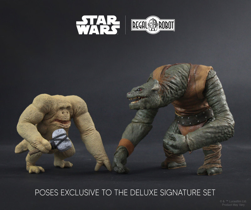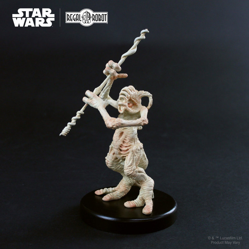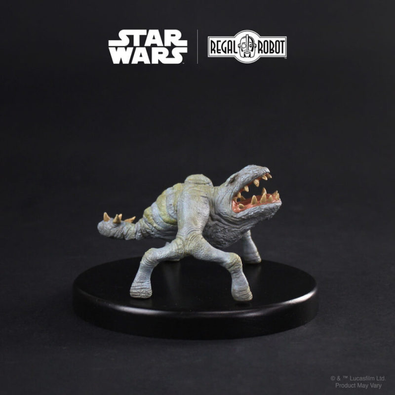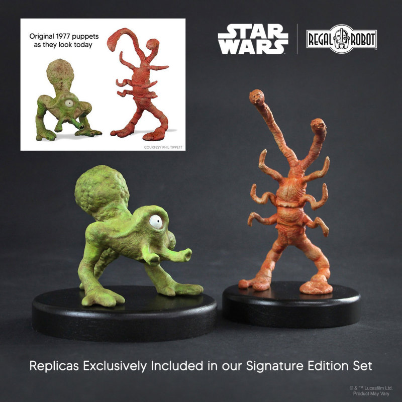 當時在《曙光乍現》中 Dejarik 戰棋的怪物棋子是由 Phil Tippett、Jon Berg 負責設計與雕刻,而這次 Regal Robot 推出的版本就是根據 Phil Tippett 團隊在 2015 年時依照《曙光乍現》原始拍攝道具進行 3D 掃描與攝影測量之後重製的怪物棋子,以及盧卡斯影業提供的珍貴資料再進行等比例的完全複製,那些在劇中以全息影像活躍的怪獸棋子,現在則是以出色造型與極具生物感的細膩上色立體化,超級酷,收藏價值極高,不過價格也實在是高得嚇人!