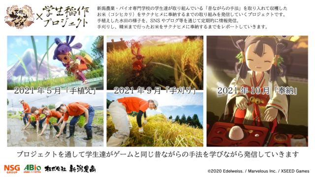 近期更有日本的農業學校與《天穗之咲稻姬》 展開合作,新潟農業 ABio 専門學校的 ABio 食品農業經營科將採用遊戲中的種植方式,以昔日農人古法栽種稻穀。該計畫將於今年 5 月開始實施,學生將會記錄下耕作的過程,並與遊戲的內容作對照,讓遊玩『天穗之咲稻姬』的體驗真實上演在真實社會中。
