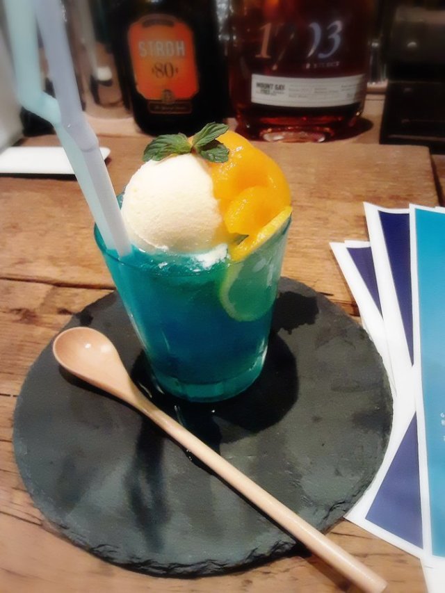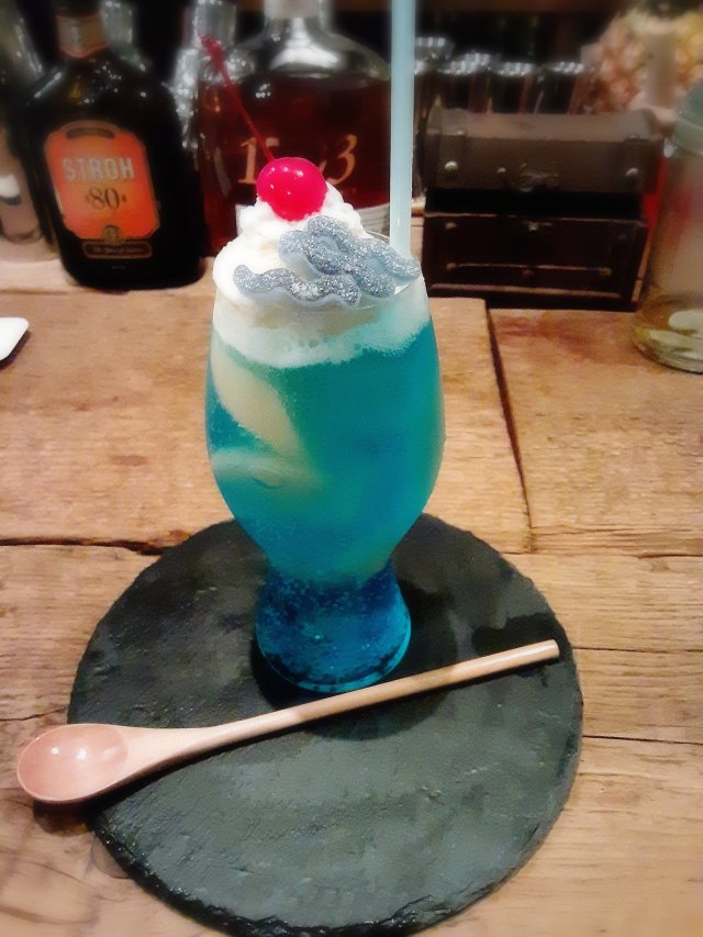 老闆是能將蘭姆酒運用自如的得獎調酒師。他不但有技術,對食材有很講究。店裡使用的冰塊是用町田老製冰店傳承下來的技術製成的,即使放進汽水裡也不容易讓汽水的氣跑掉。老闆說,漂浮汽水和調酒有所不同,在研發、製作的過程中學到很多新知識。