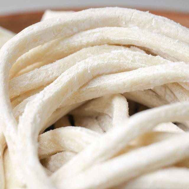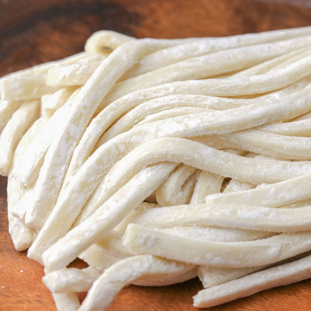 販售烏龍麵數十年的店舖-麺ズ冨士山這次開發「超厚款珍珠烏龍麵」,將吉田烏龍麵的麵糰中加入了屬於珍珠原料的樹薯粉,提供珍珠所擁有的彈性與口感,讓兩者融合在一起,打造出全新的組合。更具有煮熟後約 12 公分的厚度,讓你在享用烏龍麵時更具有紮實的飽足感。