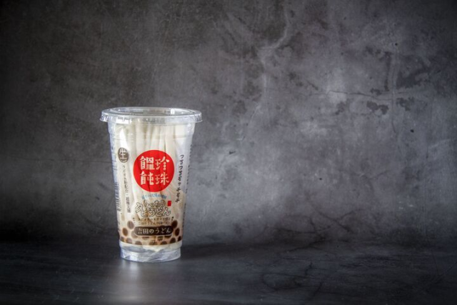 這次日本人又有新的創意珍珠料理了!由日本山梨縣的烏龍麵店鋪-麺ズ冨士山所推出的「超厚款珍珠烏龍麵」,以飲料杯裝包裝起來,搭配上面的圖案,儼然看起來就是一杯日常購賣的飲料 XD。