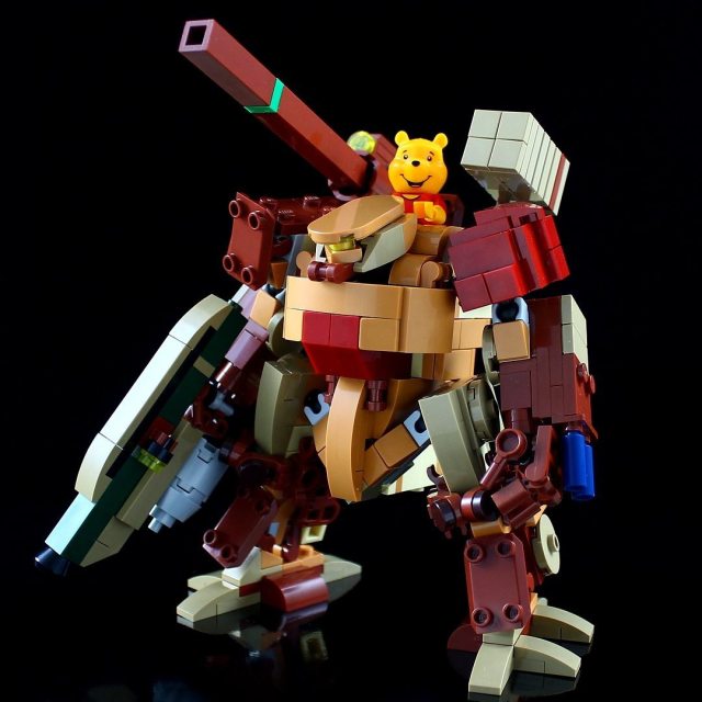 另外,作者還做了其他「奇葩」的模型,例如小熊維尼駕駛著「機甲維尼」,明明跟機甲八竿子打不著的維尼居然駕駛機器人了,雖然機器人看起來很帥,但這組合實在是讓人笑得合不攏嘴啊XD