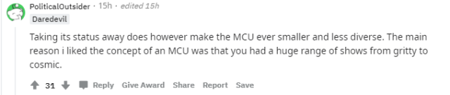 ▼Reddit 網友認為,若是MCU真要採取這樣的模式,只會變成讓多元宇宙的發展性越來越狹隘