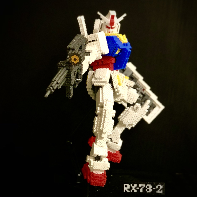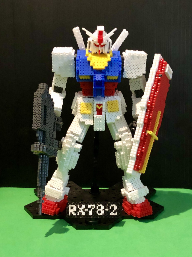 這位名為レッド(@red_AKM_R)的推主利用拼豆拼出了大家非常熟悉的初代鋼彈「RX-78-2」,所動用到的拼豆數將近1萬3千個,組成的零件包含武器部分共694個,完全就是一組鋼普拉會有的零件數,而且組裝完成的模型還可活動,可動關節共88個,完全不輸一般的鋼普拉模型。