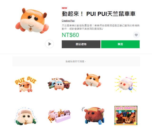 【2021年5月21日 22:45更新】目前台灣LINE官方已經正式推出中文版《天竺鼠車車》動貼圖了,喜歡的朋友可以點選購買!