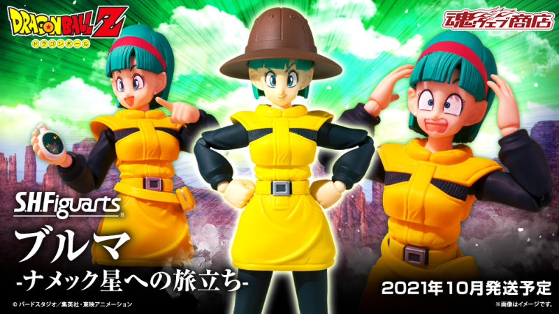 「S.H.Figuarts 布瑪 - 前往納美克星」,以布瑪在《七龍珠Z》納美克星篇中的造型為設計,重現川著黃黑色服裝、戴著粉色髮帶的短髮造型,尺寸全高約 140 mm,除了有劇中的帽子、後背包和腰包和龍珠雷達等特色裝備之外,還有招牌笑容、自信微笑、驚嚇臉與崩潰吶喊的 4 種替換面部表情零件,可以賞玩出各種劇中的精彩場景!另外,那美克星版本的大龍珠七星球也附屬登場!