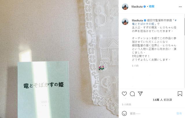 圖片來源: 《龍與雀斑公主》官網 幾田りら instagram