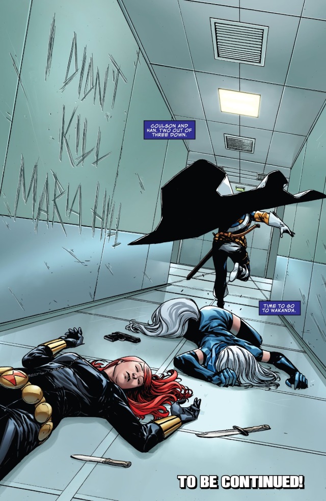 原來小尼克‧福瑞景仰的導師與前輩瑪麗亞‧希爾(Maria Hill)前幾天被謀殺了,而在現場出現的正是模仿大師的盾牌。很自然的,所有人都認為是模仿大師殺了她,而現在有人要來尋仇了:方才騎著重機的刺客,正是全世界最危險的殺手,黑寡婦!