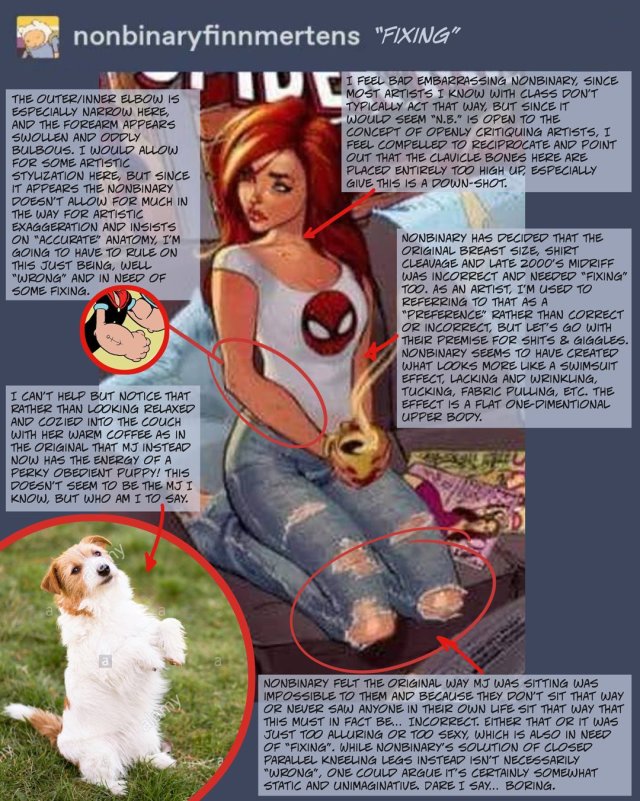 曾擔任過DC、Marvel美漫封面繪師的J. Scott Campbell,所繪製的《Amazing Spider-Man》#601封面,在日前遭到Tumblr上一名名叫bunnbi的網友批評,稱Campbell筆下的人物「MJ」瑪莉·珍畫得太糟糕,於是便自己擅自將Campbell的作品修改,並上傳至網路上。