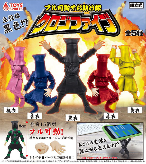 日本轉蛋玩具商 TOYS SPIRITS 即將於 2021 年 08 月推出最新原創轉蛋商品「全可動救助隊 黒衣V(フル可動でお助け隊 クロゴファイブ)」,參考售價 500 日圓/轉。