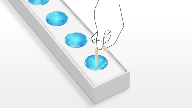 事實上除了富士山鉛筆外,ミチル也設計做一系列冷色系新奇創作,例如以水波紋為概念,所構想出的「AQUA口香糖」;以及以藍色天空與海洋為發想,所設計出的便條紙;甚至還有以雨傘為設計基礎,將木棍做成傘柄並插在水藍色的羊羹上,便成了相當獨特的「水羊羹」了。