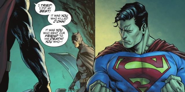 雖然蝙蝠俠對於宇宙政治毫不在乎並拒絕,超人還是來到蝙蝠洞試著說服他幫忙,他表示自己不可能同時出現在所有地方,而蝙蝠俠也表示同意,卻激怒了超人(代表他認為是超人的不作為害死了人),而超人則認為是蝙蝠俠的錯誤決策害死了聯盟中的良心,火星獵人J'onn J'onzz!