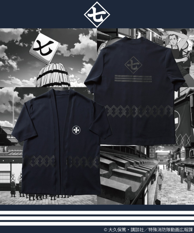 這次推出的服飾系列,包含;短T、無領開襟衫、棉質短褲、長褲與牛仔夾克,以融入《炎炎消防隊》的世界觀與形象設計而成。