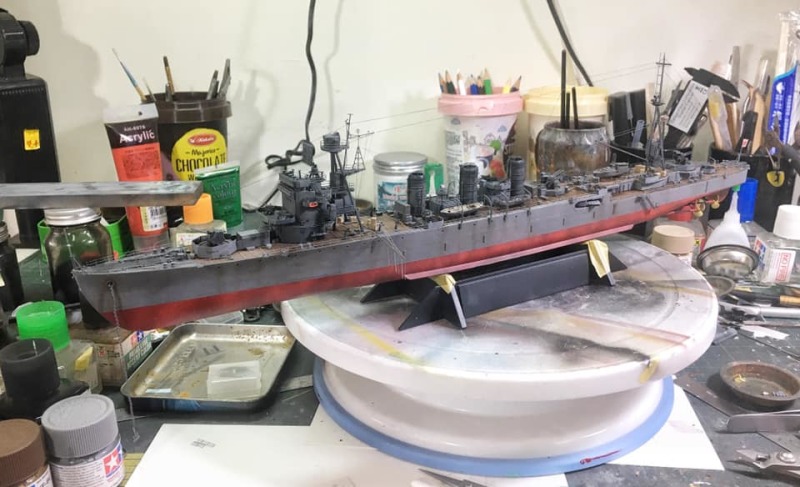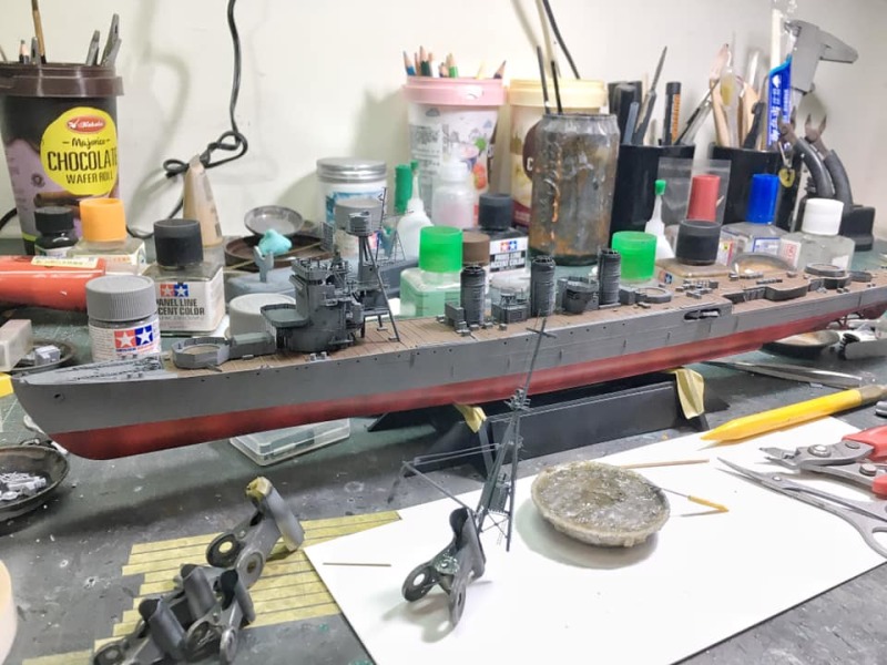 ↑安裝艦橋,製作舊化,愈來愈接近完工了!