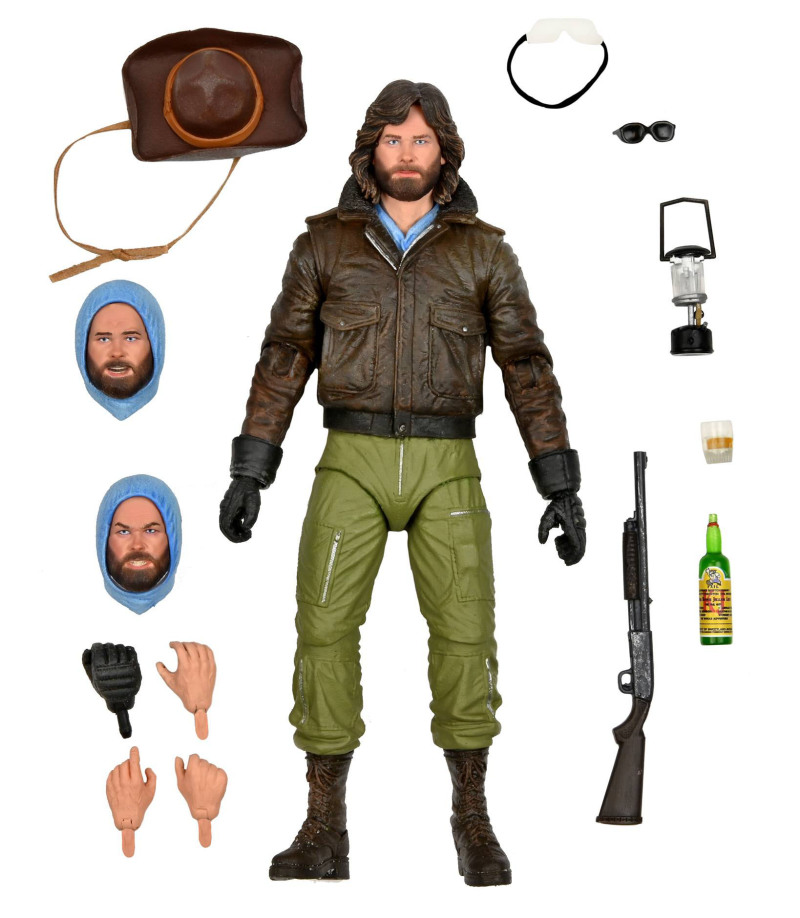 本作根據「R.J. 麥奎迪」的劇中造型,還原了深褐色的皮夾克、草綠色長褲、帶點捲度的中長髮......等外觀特點,頭雕部分也頗有年輕時「寇特·羅素(Kurt Russell)」的神韻,配件內容相當不錯,包含戴上帽子的頭雕、墨鏡、護目鏡、步槍、酒瓶、油燈、多個替換手等等,對於喜歡《突變第三型》的玩具人來說真的很可以收藏呀!而且依照 NECA 曾經推出過的商品內容來看,電影中那些恐怖怪物變成玩具立體化的一天也不是沒有可能呢。