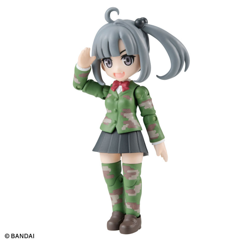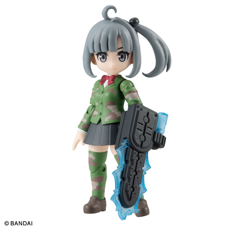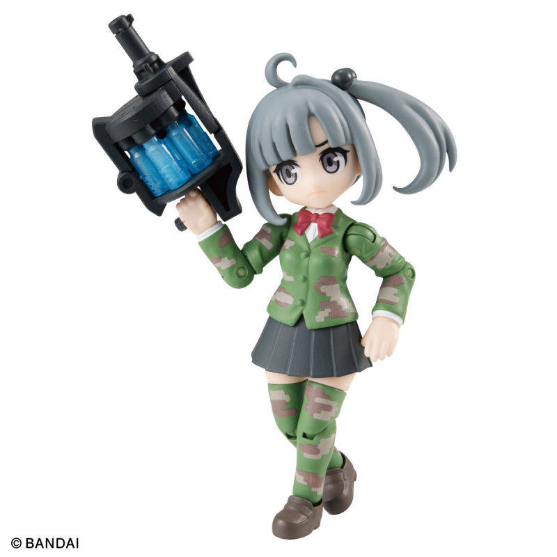這款水槍少女「泉かのん」(かのん = Kanon)是將萬代所舉辦的彩繪設計投稿活動中,所挑選出來的得獎作品之實體化商品,以特別的套組販售,美少女泉かのん身穿迷彩學生服,並且有三種表情零件可以替換,並且能夠雙手各持武器,整體的關節可動也很不錯。可以擺出各種生動姿勢。
