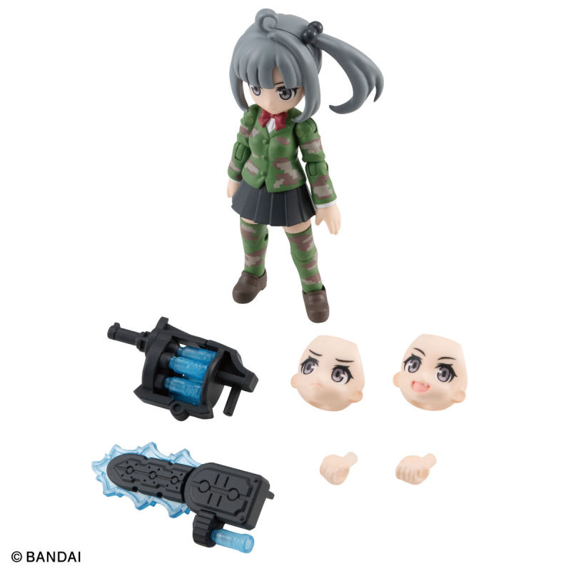 另外萬代也同時要推出水槍少女的特別武器組,有長步槍、大槌、以及可以裝備於背後的重武器,武器零件都可以套用在先前所推出的水槍少女轉蛋玩具上。