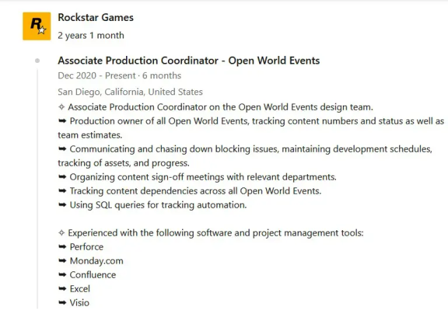 ▼網友在LinkedIn上發現,Eli Week是負責開放世界的製作協調師