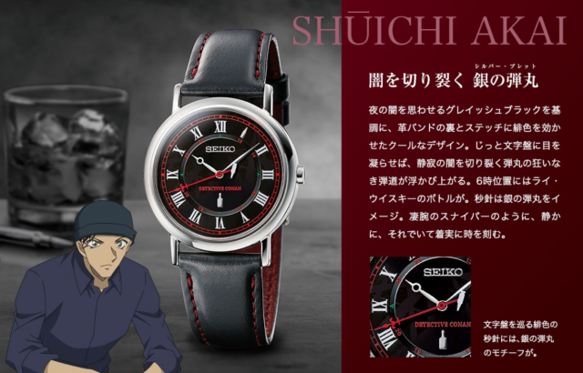 事實上 SEIKO 先前就與《名偵探柯南》推出過聯名手錶,先前是選擇柯南與沖矢卯製作兩款。這次則選擇了皆待過黑衣組織的三人 : 灰原哀、赤井秀一與安室透為設計主題,可說是黑衣組織系列也不為過吧 XD。