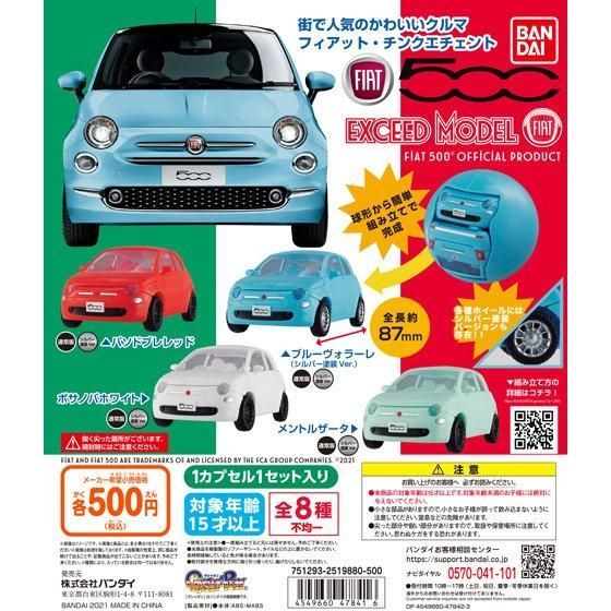 由 BANDAI 食玩部推出,受到許多粉絲喜愛的整顆造型轉蛋商品「EXCEED MODEL」系列,曾經推出過鋼彈頭、薩克頭、天鵝船等商品,本次該系列將在 2021 年 5 月第三周發售一款經典的都會汽車轉蛋玩具,來自義大利的「飛雅特500」(FIAT 500)!