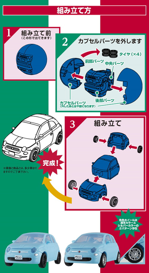 這款 EXCEED MODEL 所推出的飛雅特500,利用商品本身的特性,巧妙地把車身等零件都做成一顆球,拆開組合完畢之後,就可以成為一輛車身長約 8.7 公分的飛雅特500,總共有四種顏色八種款式,喜歡飛雅特的朋友可以參考看看喔!