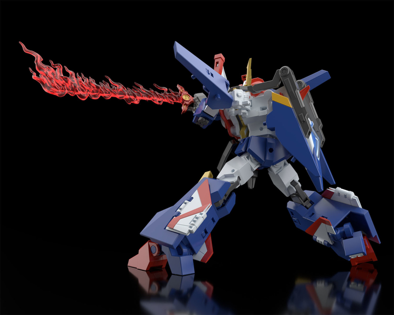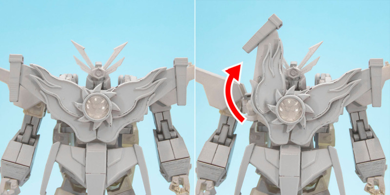 ▼ 由於肩部採用拉出式關節、胸口兩片火焰紋章也能向上轉動,武裝合體火鳥還能做出雙手持劍動作!