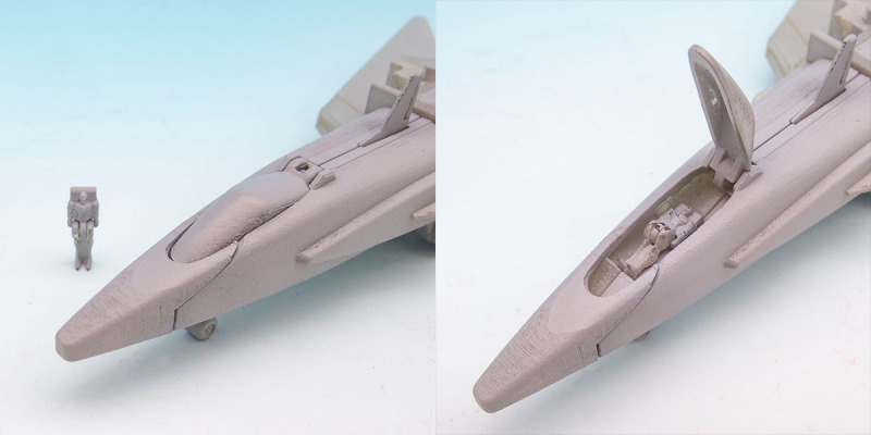 ▼ 將 A、B 兩套零件組合後即可完成造型帥氣的火焰噴射機,具備火焰飛彈與駕駛艙的展開機構,能夠將同比例的火鳥勇太郎人偶放進駕駛艙。