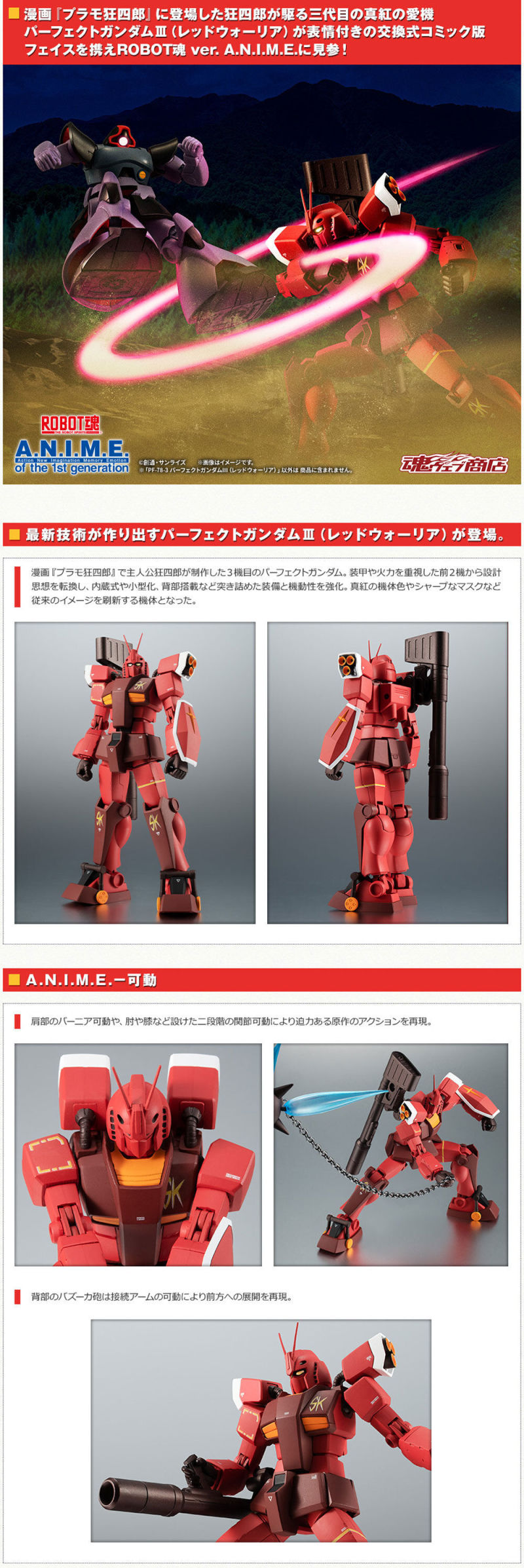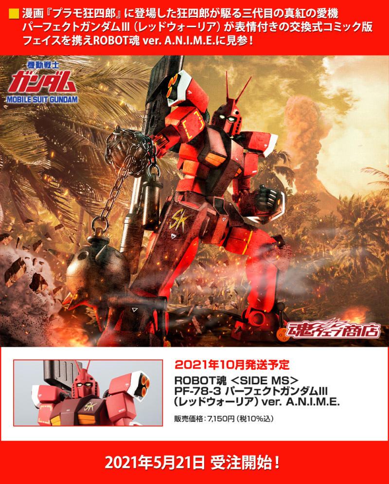 由日本 BANDAI SPIRITS 公司收藏玩具事業部 TAMASHII NATIONS 發行的機人主題可動完成品『ROBOT魂』系列今(20)日發表了出自《模型狂四郎》的最新商品「完美鋼彈III(紅戰士)ver. A.N.I.M.E.」預計 2021 年 10 月發售的消息。