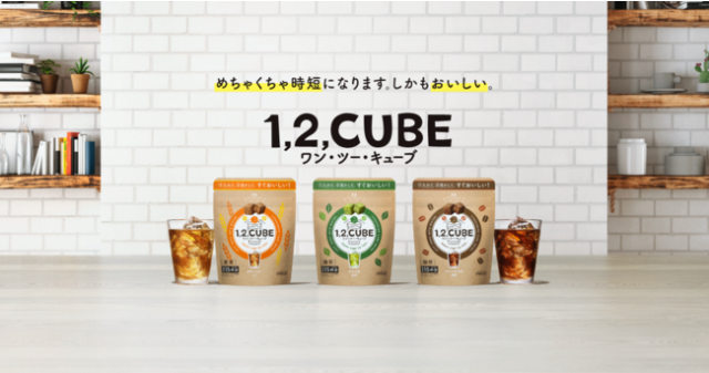 現在飲品不少都推出家庭用的即溶包,像是常見的咖啡、奶茶或是濃湯等,便利的使用提供消費者在家突然想到就可以立刻自行使用。日本可口可樂公司近日推出了新形態的商品,名稱「1,2,CUBE」的飲料濃縮磚,看似方糖的外觀,只要投入水中即可享用,目前推出咖啡、麥茶與綠茶口味。