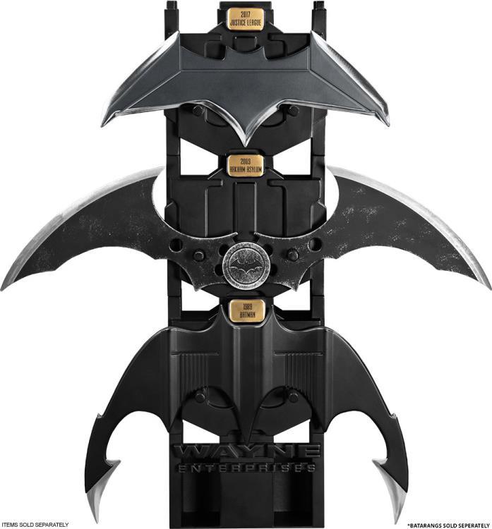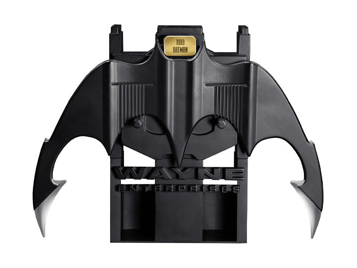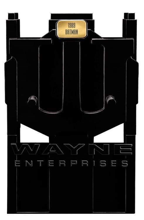 這一款採用金屬材質打造的「蝙蝠飛鏢複製品」寬度來到 23 公分,考究地還原了劇中那帶點玩具感的造型設定,兼具銳利、圓弧的線條感相當耐看,不過應該沒有搭載劇中的摺疊功能,支架部分除了有金底黑字的「1989 BATMAN」LOGO 名牌之外,還有「WAYNE ENTERPRISE」的浮雕字樣,是個定位在最底座的展示架呢!不管是單獨展示還是跟其它 Ikon Design Studio 推出的蝙蝠飛鏢搭配都很可以。