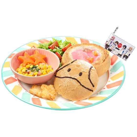 這是源自於「PICK-UP-GUNDAM 系列」與晚餐活動 GUNDAM Café COSTUME COLLECTION 2021 SPRING 的主題料理,以哈囉外觀的麵包搭配燉奶油食用,搭配蔬菜玉米沙拉一起享用更對味。隨餐還附贈角色的杯墊、卡片與原創壓克力立牌,讓你不用前去店內也可以享用跟店裡一樣的餐點外,還能獲得原創周邊。