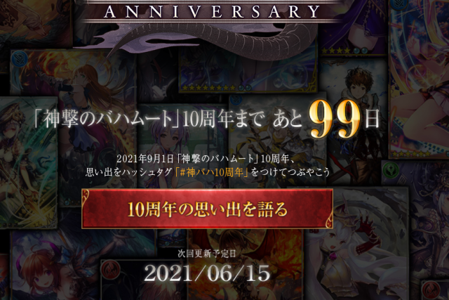 《巴哈姆特之怒》作為Cygames公司的代表性遊戲,甚至連動畫改編都未經過動畫委會員制度,實屬該公司下的親女兒,從2011年9月推出網路版本後,又輾轉推出手機平台的玩法,開啟了卡牌收集、對戰的一大盛世,轉眼間10年過去,官方甚至架設了倒數慶祝網站與新活動消息,期待今年9月1日到來。