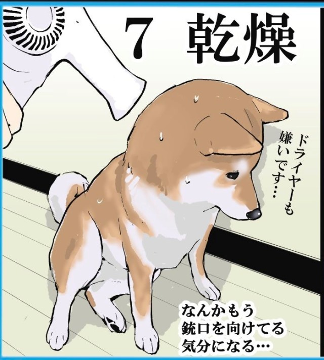 對柴柴來說依然很討厭的是,被吹風機指著的感覺大概就像是槍口對著自己一樣吧…