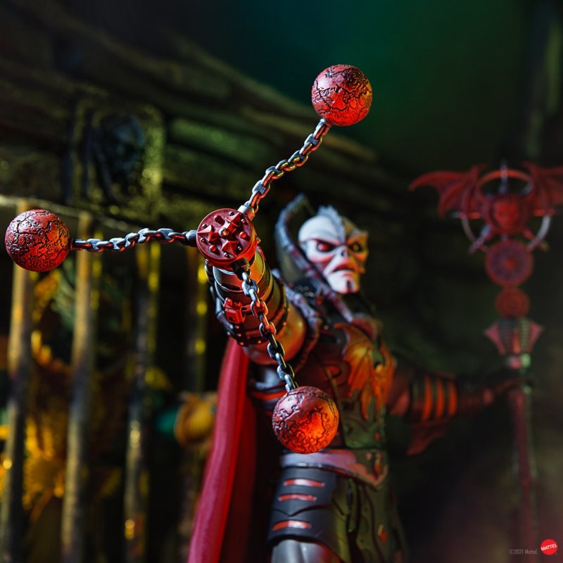 本作高約 30 公分,再現了標誌性的骨感頭部、以黑灰紅三色為主調的盔甲、胸口的蝙蝠標誌......等造型特色,布料材質的披風可以自由拆卸,並附上十字弓、法杖,以及多個替換手型;而在限定版中更追加了 Bat Wing Propeller、3 Headed Thunderball Mace 裝備,以及在劇中可以射出紅色雷射的替換手零件,變化性再提升!