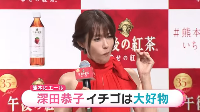 ▼深田恭子在5月24日才出席午後紅茶的新品發表會,大口吃草莓。