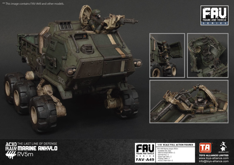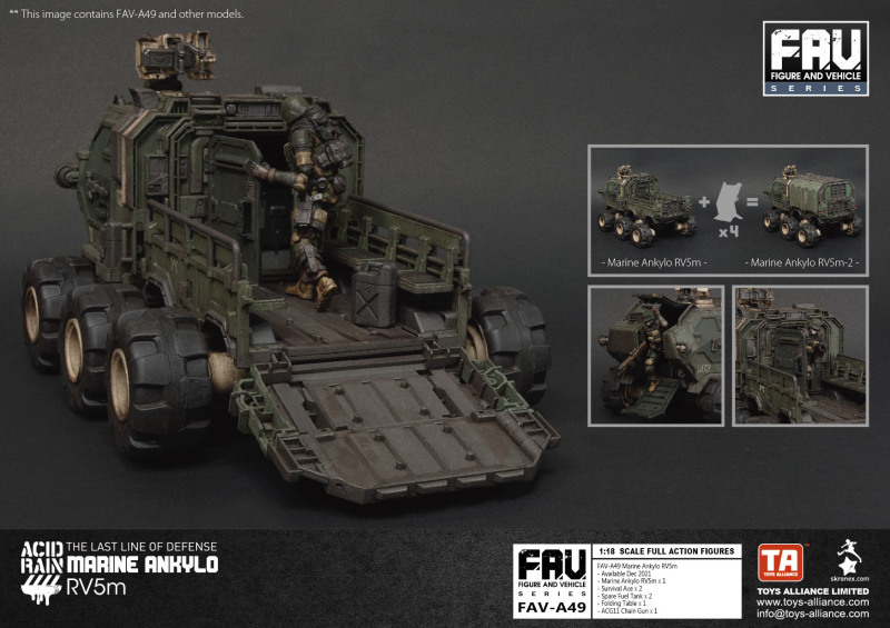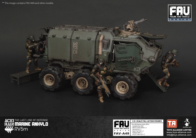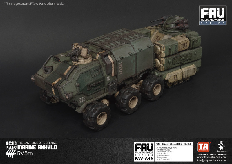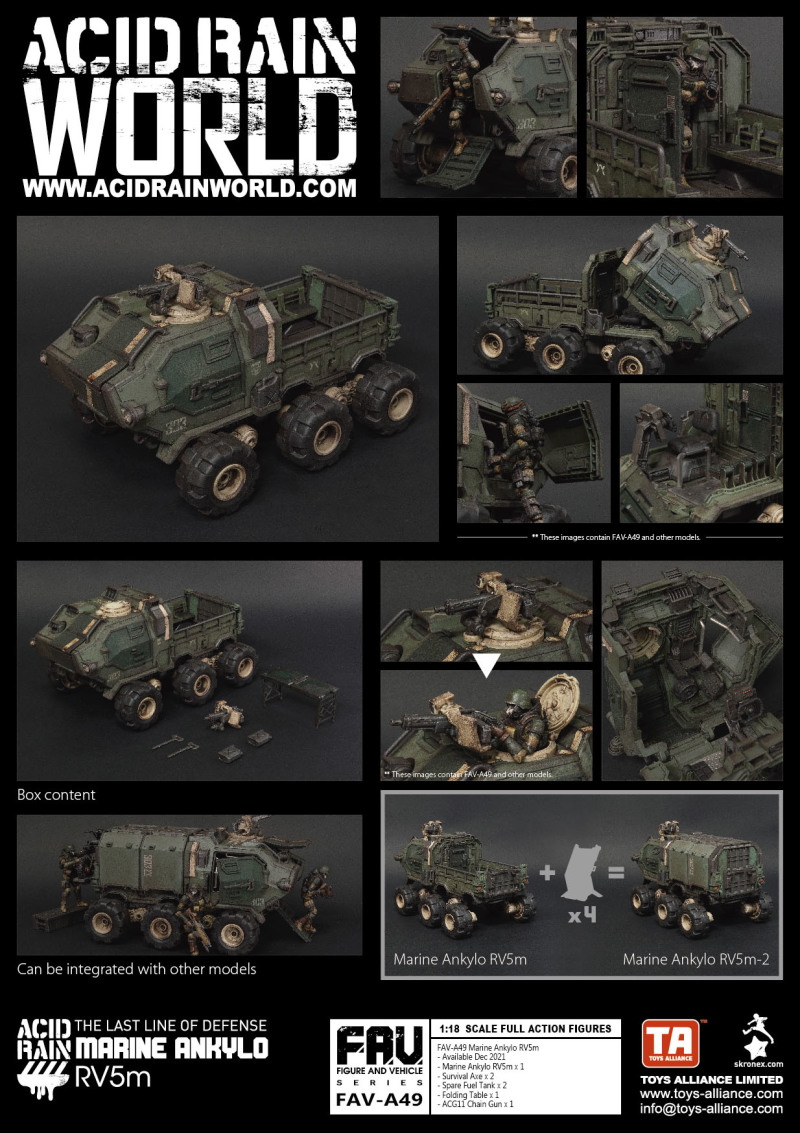 知名 3.75 吋科幻軍武主題收藏系列《酸雨戰爭》於今(27)日發佈了多款商品,本篇將帶來「海陸甲龍(Marine Ankylo)RV5m」1/18 比例可動載具!預計 2021 年 12 月發售。