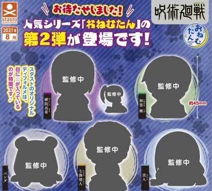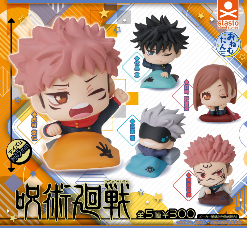 由日本知名玩具公司「STAND STONES」(スタンド・ストーンズ,stasto)所發行的「愛睏睡覺造型轉蛋(おねむたん)」,在推出好評的鬼滅之刃、Re:從零開始的異世界生活等系列後,又將推出以《咒術迴戰》為主題的首彈新作「愛睏睡覺 咒術迴戰」轉蛋,一共五種款式,每轉 300 日幣,預定於 2021 年 5 月下旬開轉~