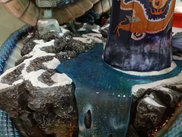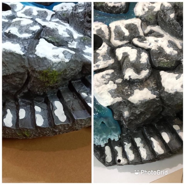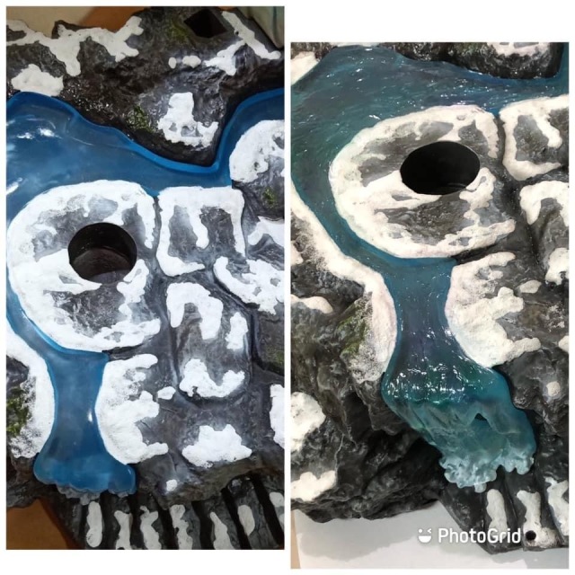 河流(岩石及霜等同方式處理,河流的部分本身都是樹酯透明件,但原本的河流因配色叫深,比較看不出來透徹的感覺,固做透明優化處理,使整體感看起來更加寫實也更接近真正的河流的視覺感)
